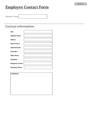 Employee Contact Information Template. The following are the key details that are needed in the emergency contact forms: Employee Contact Information Form. Simply choose an Employee Information Form Template below to securely collect employee information like contact details, medical history, and emergency contact information. In the event that you glance around, you'll revelation that anything is marked. From a little container to a big office sham area, all single matter will undoubtedly have at any rate one mark. Naming things is valuable, simple and functional, and the applications are basically interminable. You can locate a wide assortment of names accessible available, in various shapes and sizes, styles, plans, hues, materials, template, etc.
