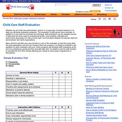 Child care interview questions and hiring materials can help you find the employees that are a best fit for your center, while staff evaluation forms can build empowerment among your staff. It is helpful to ask the staff member to complete the form first, thereby allowing your ratings to show areas of agreement or discrepancy. Social Media; Fillable forms cannot be viewed on mobile or tablet devices.